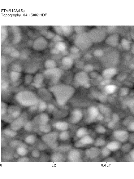STM Aufnahme einer optimal glatten 35nm dicken Gold-Titanschicht auf (100)-Siliziumwafer. (RMS<1nm)